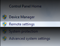 2) Here in this new view, we are selecting "Remote Settings." Once this option is selected, you will then see the following screen with the RDP (Remote Desktop) options.