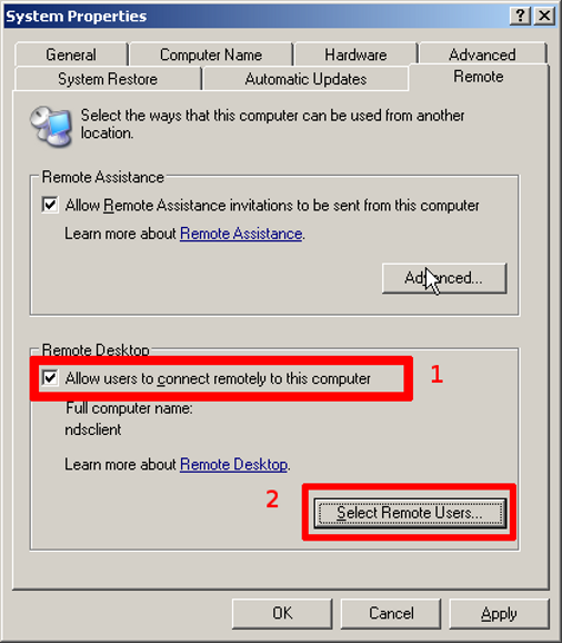 Enabling Windows XP Remote Support